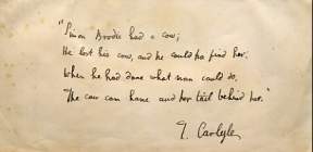 The forgery purports to show Carlyle in playful mode, but the writing bears only a passing resemblance to the real thing, which is highly idiosyncratic. This also comes from the same forger as the